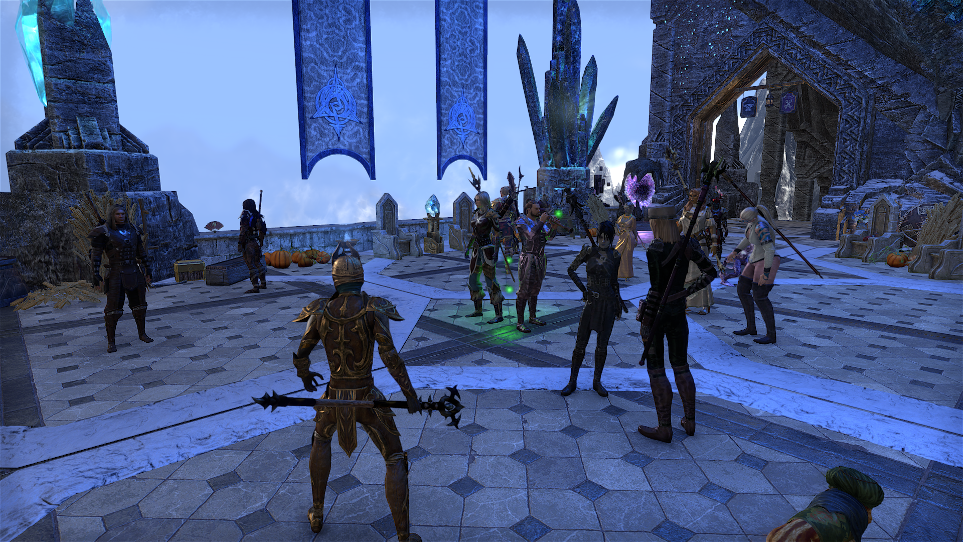 Although I’d been active in the Discord chats, I hadn’t actually done anything with the guild so I signed up for one of the several weekly events organized by various guild members. It had been awhile since I’d joined any scheduled MMO event (the last: a flash mob in Star Wars Galaxies). Once entering the guild hall (the decked-out mountain villa of one guild elder), the chaos of dozens of waiting avatars was immediately familiar. Once we set out, I realized I’d never figured out which Discord channel was being used by the group. We zipped through one of ESO’s regions, knocking off a half-dozen difficult world bosses in under half-an-hour. Once complete, the crowd dispersed in moments.
